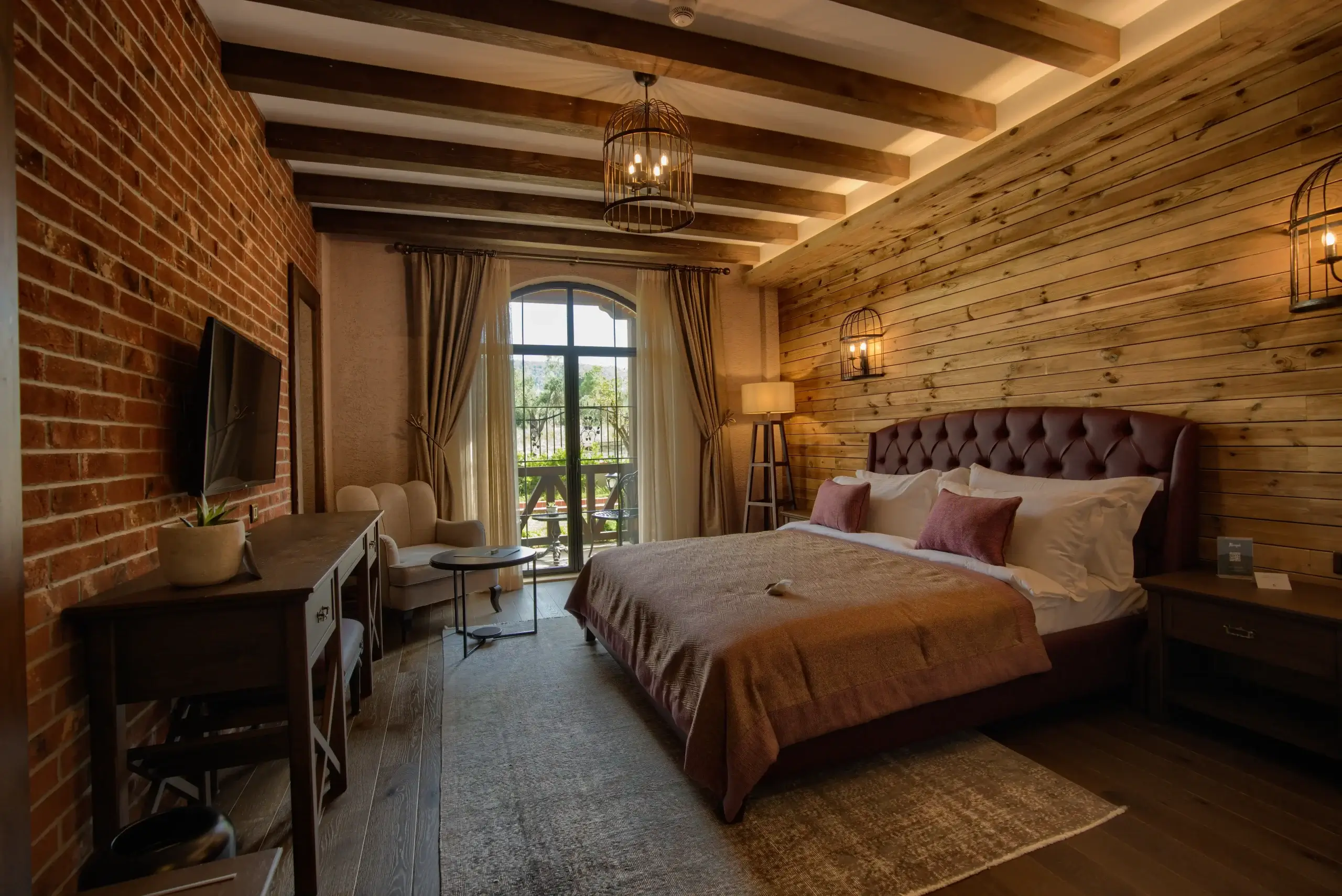 Ahşap ve tuğlanın birleşimi ile oluşan sıcak atmosferi, yeşile ve doğaya açılan balkonları ile size ev ambiyansında konforlu bir konaklama deneyimi sunuyoruz.